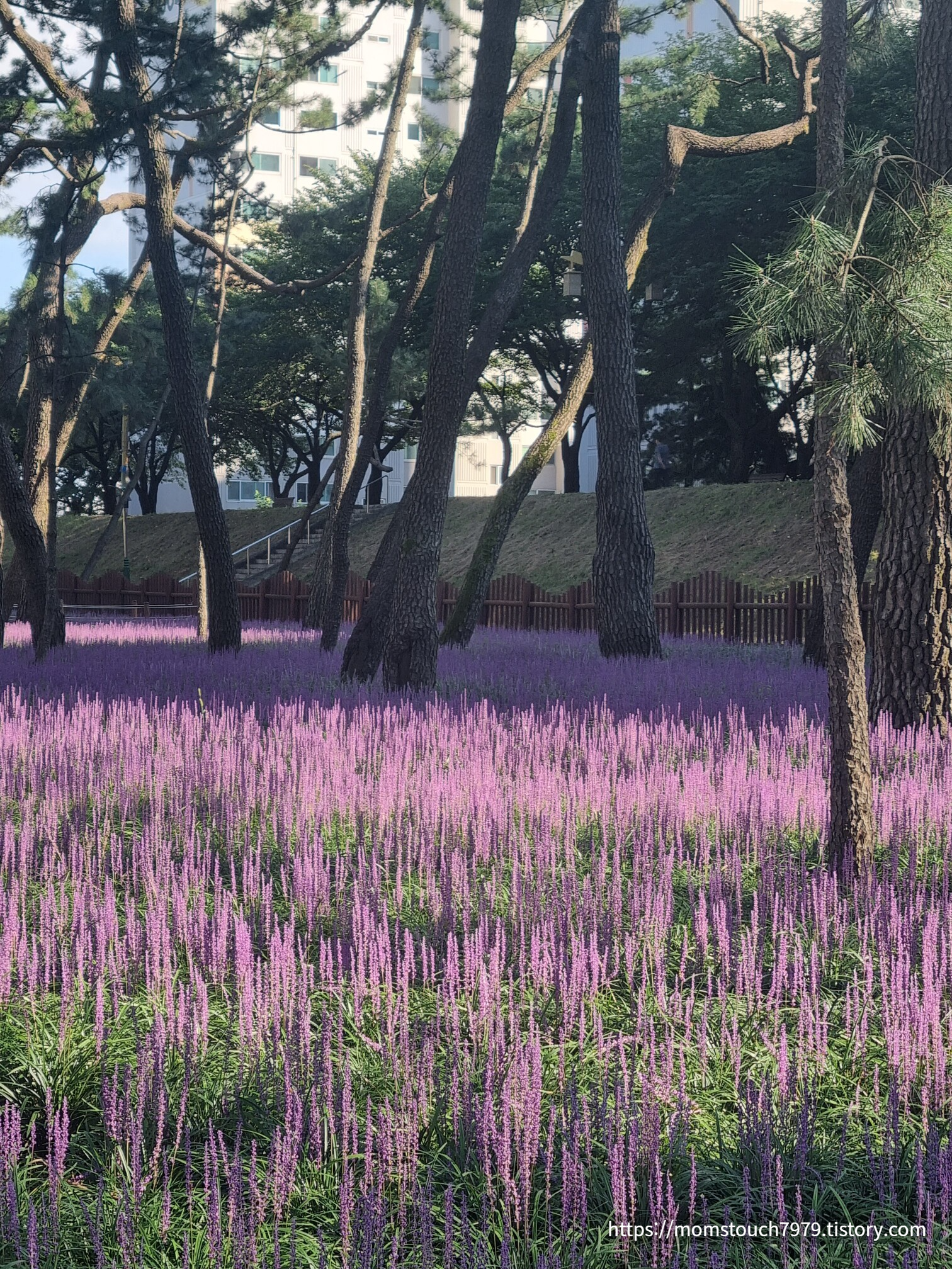 8월 10일 현재 만개한 맥문동 풍경을 만나실 수 있습니다. 소나무 길이 시작됨과 동시에 끝까지 맥문동이 있습니다. 중간중간에 앉을 공간도 있고 이미 사진작가님들이 자리를 잡고 만개한 맥문동을 촬영하고 계셨어요. 라벤더와는 다른 보랏빛의 은은함과 소나무의 운치를 더해 밀양강이 주는 아름다움을 함께 느낄 수 있는 밀양 맥문동 삼문 송림길입니다.