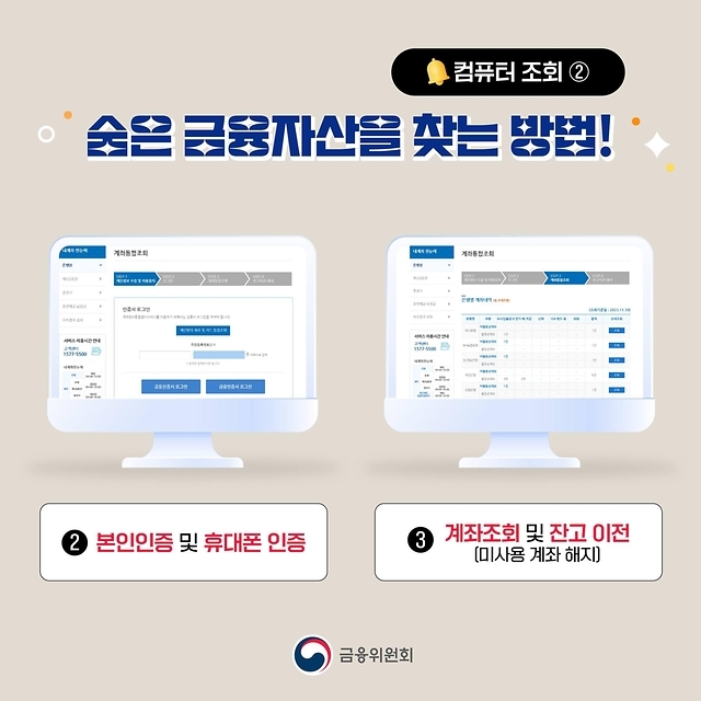 컴퓨터와 휴대폰을 이용하여 나의 숨은 금융자산을 찾을 수 있습니다.