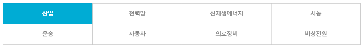 - 응용분야로는 산업, 전력망, 신재생에너지, 시동, 운송, 자동차, 의료장비,비상전원에 해당이 되겠습니다.