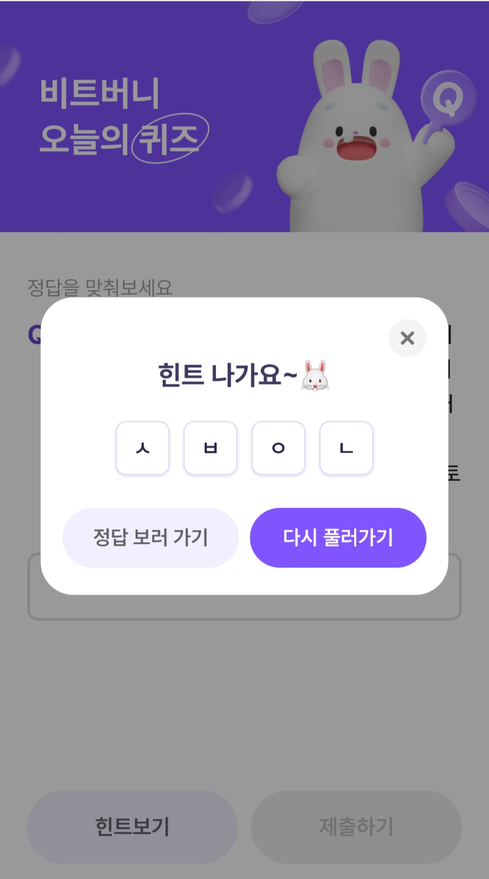 오늘은 비트버니 퀴즈와 함께 밈코인의 한 종류인 시바이누에 대해 거래방법까지 알아보았는데요. 내일 새로운 퀴즈와 함께 만날게요~
