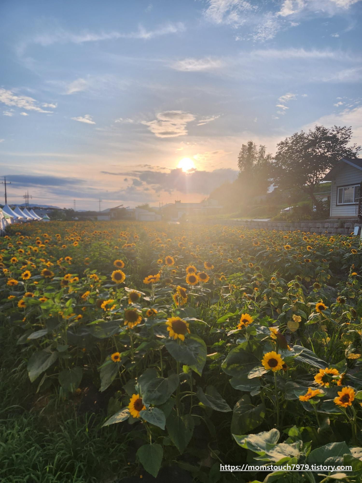 함안 연곷테마파크에서 연꽃을 감상하시고 차로 10분 정도 거리에 있는 강주 해바라기 마을도 추천드려 봅니다. 현재 강주 행바라기 마을에서는 함안 해바라기 축제가 펼쳐지고 있습니다.