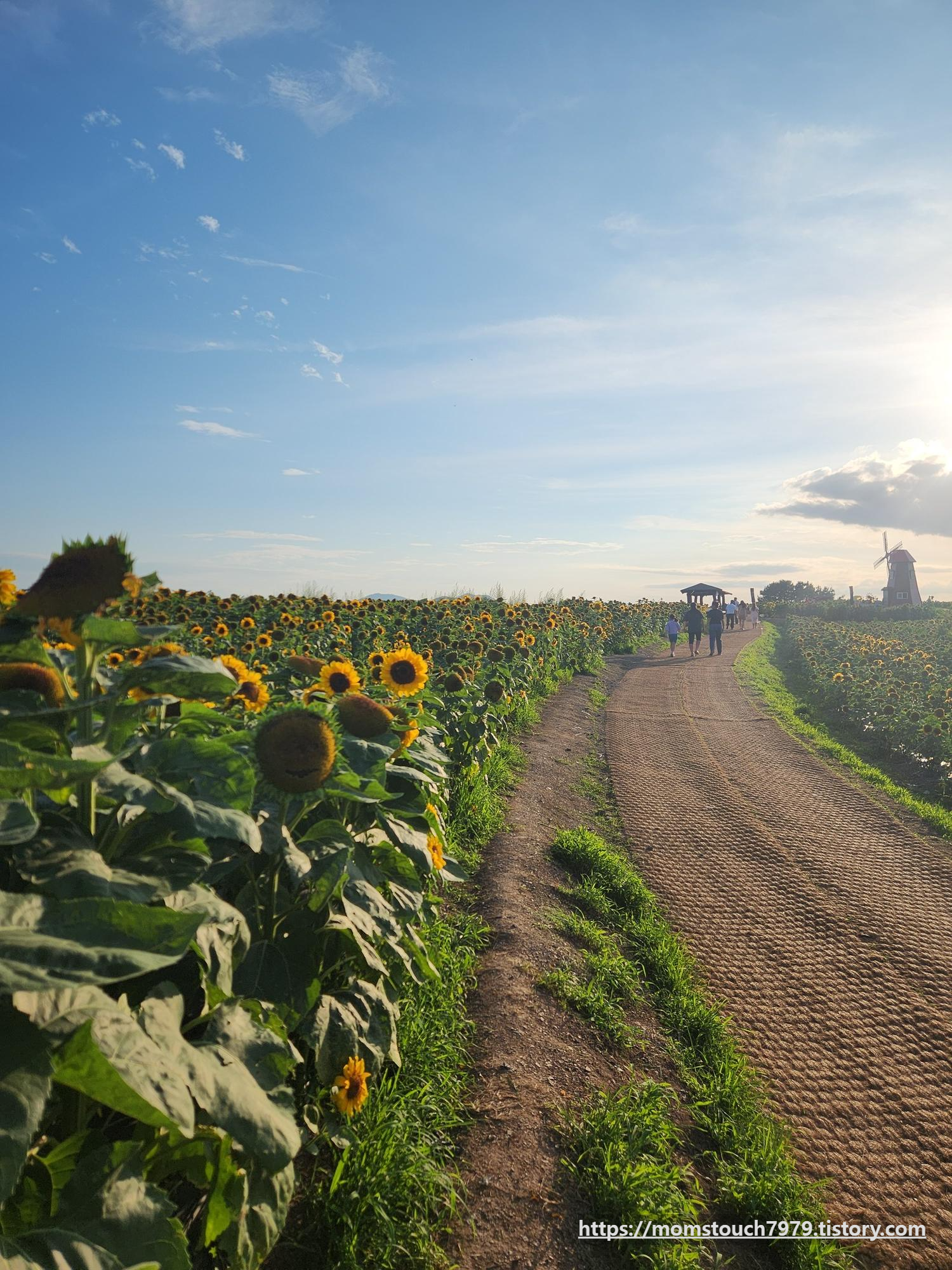 축제을 시작한 6월 28일 주에는 싱싱했던 해바라기들이 축제 첫 주 주말부터 내린 비로 현재 해바라기 잎이 많이 떨어진 상태라 입장료를 유료에서 무료로 진행한다고 합니다. 강주 해바라기 마을의 규모는 상당히 넓었으나 아쉽게도 낙화된 꽃들이 많이 보여 안타까운 마음이었답니다. 하지만 여전히 괜찮은 해바라기들이 있으니 포토존에서의 사진은 아쉬운 대로 잘 나올 수 있다는 점 알려드리고 싶습니다. 사진명소답게 사진작가분들은 해가 질 때의 해바라기 모습을 많이들 담으신다는 팁도 알려드려요.