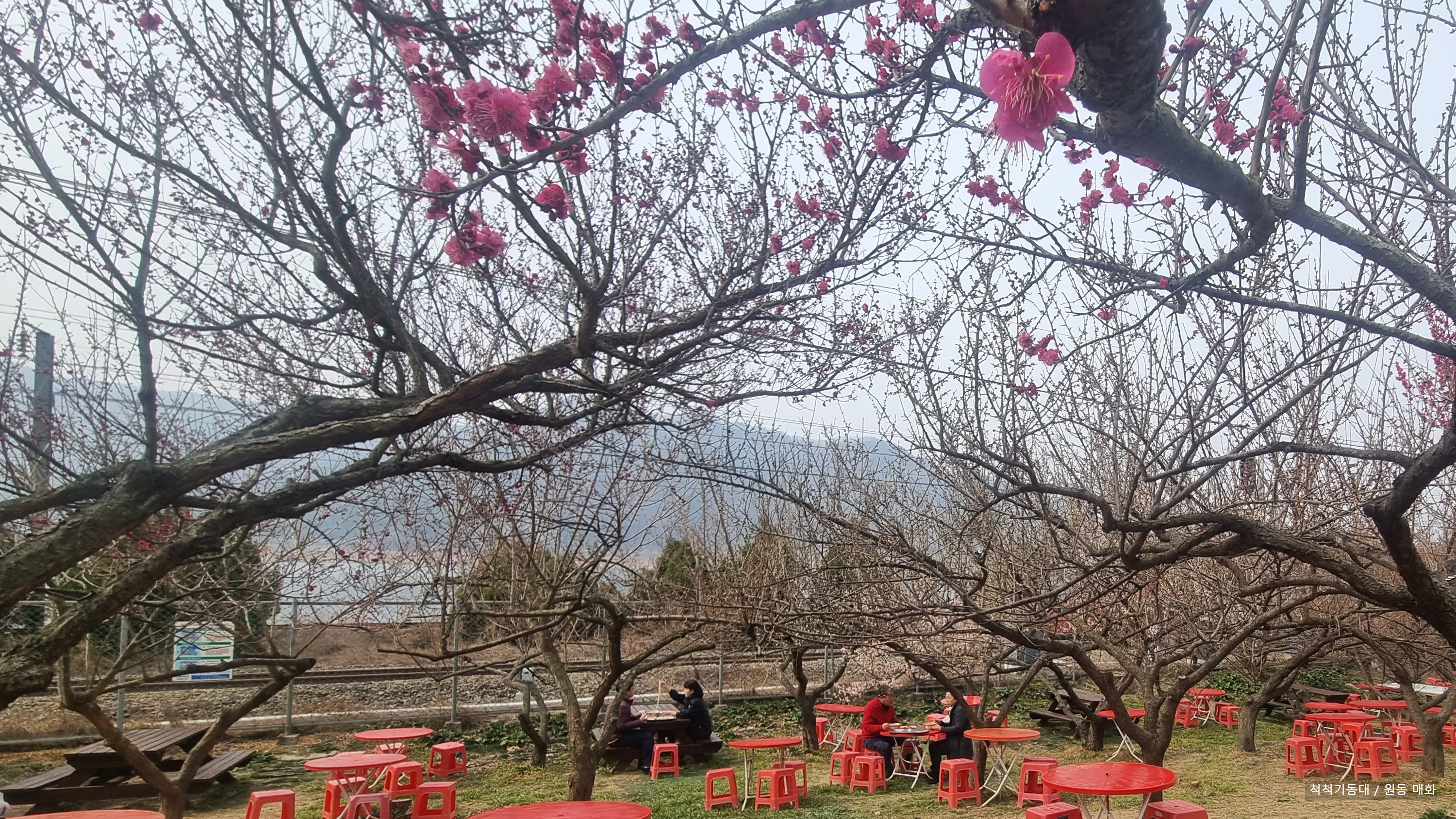 양산 원동 매화마을을 잘 볼 수 있는 곳을 꼽자면 전체적인 분위기는 전망대에서 , 매화만의 특별함은 순매원에서 보시는 것 추천드려봅니다. 화려한 홍매화의 경우는 순매원 안에서 더 자세하게 볼 수 있으니 참고하세요. 순매원은 상시 개방이 아니고 3.1 ~ 3. 25일까지만 개방한다고 하니 일정 참고하셔서 반드시 매화축제 기간이 아니어도 들러 보실 수 있다는 점 기억해 두시면 좋을 것 같습니다. 순매원에서는 간단한 간식들도 판매하고 있습니다. 만발한 매화꽃 아래서 맛있게 먹었던 떡볶이가 파전이 기억에 납니다. 원동역에서 들어오는 기차와 함께 멋진 사진을 남길 수 있는 곳은 전망대입니다. 낙동강과 원동역을 지나 원동 매화마을을 멋지게 담을 수 있는 사진도 잊지 않으셨으면 좋을 것 같습니다.