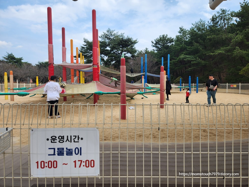 울산대공원 남문이나 정문으로 들어오시면 울산대공원의 벚꽃길을 만나실 수 있습니다. 저는 정문에서 자전거 대여 후 울산대공원을 한바퀴 도는 코스로 정했기에 정문, 남문, 동문까지 자전거로 모두 다녀올 수 있었습니다. 자전거 대신 산책 코스로도 너무 괜찮은 울산대공원 정문에서 남문까지 30분이면 충분히 걸어가실 수 있습니다. 가는 도중 지관서가(북카페), 어린이교통체험공원, 뜀동산, 무지개 그물놀이터를 지나 튤립이 있는 남문 광장까지가 대공원에서 제일 예쁜 벚꽃길이 아닐까 합니다. 벚꽃은 이미 지난주부터 만개했기에 현재는 흐드러진 벚꽃보다는 벚꽃 엔딩을 보러 가기에 더 적합할 것 같습니다. 꽃비가 내리는 울산대공원도 지금 너무 아름답다는 말씀 꼭 드리고 싶습니다.참고로 아이들이 너무 좋아하는 뜀동산과 무지개 그물놀이터는 벚꽃길과 튤립방향 사이에 있습니다. 뜀동산 운영시간은 11:00 ~ 16:30분까지이며 뜀동산의 경우 신발은 벗고 이용하시면 됩니다. 아이들이 뜀동산에서는 노는 모습을 보고 있노라면 어른인 저도 함께 뛰고 미끄럼 타고 싶다는 생각이 절로 날 정도로 아이들에게 있기 많은 아이템들이니 돗자리와 맛있는 간식 챙겨 튤립도 보고 아이들 놀거리도 함께 하는 것도 참고하시면 좋을 듯합니다. 무지개 그물 놀이터 이용시간은 10:00 ~ 17:00까지 입니다.