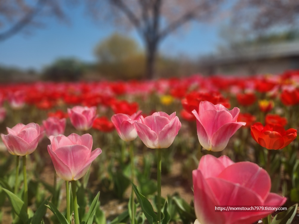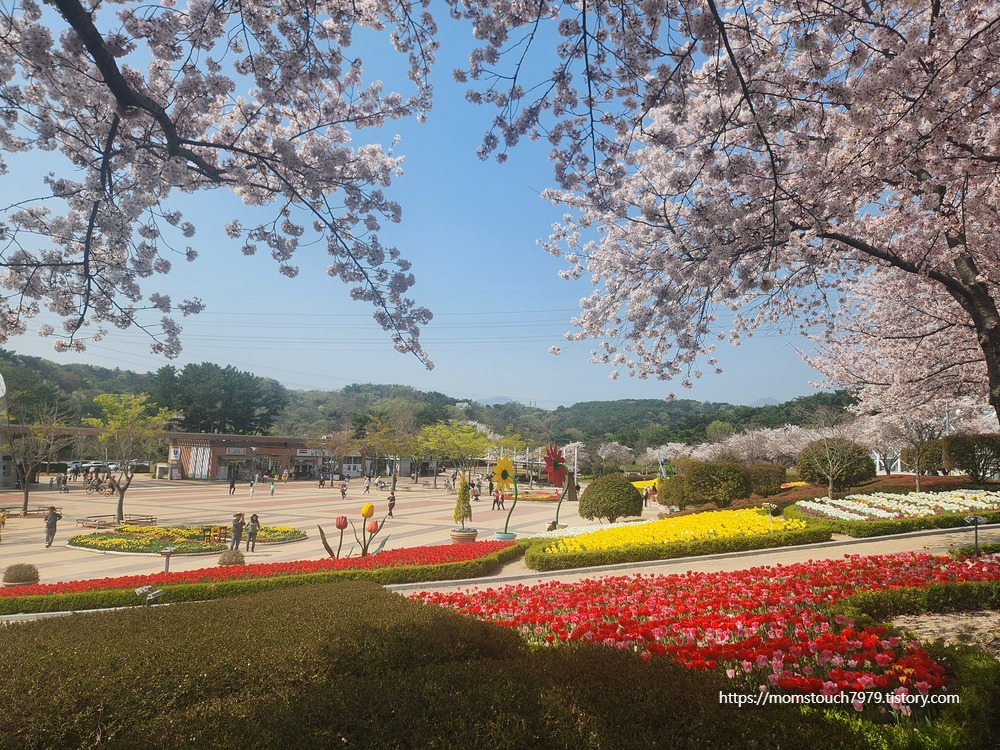 울산대공원 남문광장에는 2023. 4.1일 현재 튤립이 예쁘게 피었습니다. 해마다 봄이 되면 벚꽃과 함께 다양한 색상의 튤립이 울산대공원에 꽃을 피웁니다. 울산대공원 남문 광장은 동물원, 장미원, 생태여행관, 키즈테마파크관, 뜀동산, 무지개 그물놀이터까지 쉽게 갈 수 있어서 아이들과 가족나들이로 좋은 코스입니다. 튤립 정원에는 사진을 찍을 수 있는 의자와 포토존도 준비되어 있으니 화려한 튤립에서 인생사진 남겨 보시는 일도 잊지 않으시면 좋겠습니다. 현재 튤립은 거의 다 피었습니다. 한쪽에서는 아직 준비 중인 곳도 있으나 벚꽃과 함께 제일 아름다운 모습을 감상할 수 있는 시기입니다. 튤립 메인은 남문 광장이지만 울산대공원 곳곳에 튤립이 심어져 있어서 같은 시기에 다른 곳에서도 쉽게 튤립을 보실 수 있습니다. 남문 광장 튤립 정원 뒤로 생태여행관에서는 4.1일부터 ~ 소진 시까지 입장 고객에 한하여 1인당 2개의 식물화분을 주는 이벤트를 하고 있습니다. (입장료가 어른의 경우 2,000원 인걸 감안하며 이벤트를 성공하신다면 너무 좋은 꿀혜택인듯 합니다. 가실 분들은 미리 참고하시면 좋을 듯 합니다.)4월 5일 식목일을 위한 이벤트를 열고 있는 거라고 하니 다양한 생물들의 생태체험도 관찰하고 이벤트 선물도 함께 즐기시면 좋을 것 같습니다. 울산대공원 남문광장, 정문, 동문에는 간단히 먹을 수 있는 분식들과 카페 (정문 이디야 카페, 지관서가 북카페, 쥬시 생과일 주스 등), 매점들도 있습니다. 울산대공원 근처 먹거리나 식당, 카페들은 세 곳 중 정문 앞쪽이 제일 많고 다양합니다.
