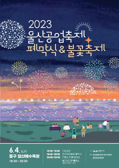 ● 개막식은 2023.6.1 (목) 19:30 태화강국가정원 남구 둔치에서 진행됩니다. '새로운 시작, 위대한 첫걸음'을 주제로 진행되는 울산공업축제는 19 : 30분 퍼레이드카 테마 퍼포먼스, 군집 드론쇼를 시작으로 초대가수 축하공연이 이어집니다. 20:40 ~21:50 축하공연에는 윤하, 거미, 테이, 김용필, 신유, 하동진이 출연합니다.