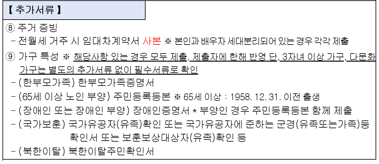 - 제출서류는 공고일 이후 발급분만 인정됩니다.(필수서류 및 추가서류 안내입니다.)