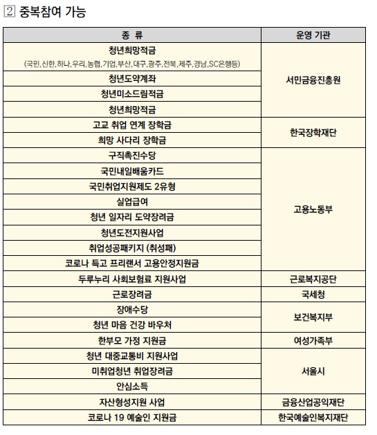 희망두배 청년통장 중복 가입 가능 사업 안내