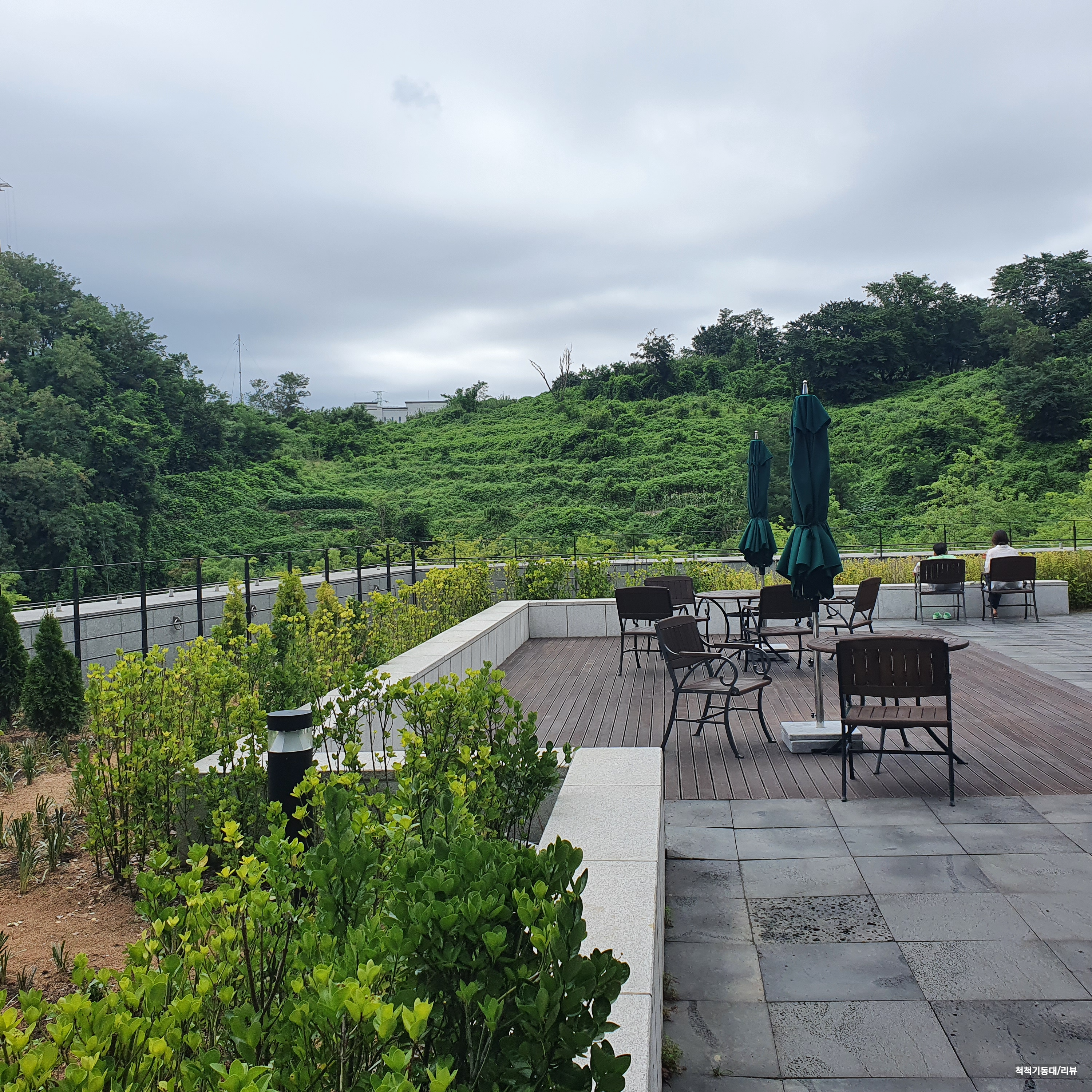 구내식당옆에 바로 있는 야외 테라스입니다. 초록뷰가 함께하면 더 근사한 야외 식당도 될 수 있어요.