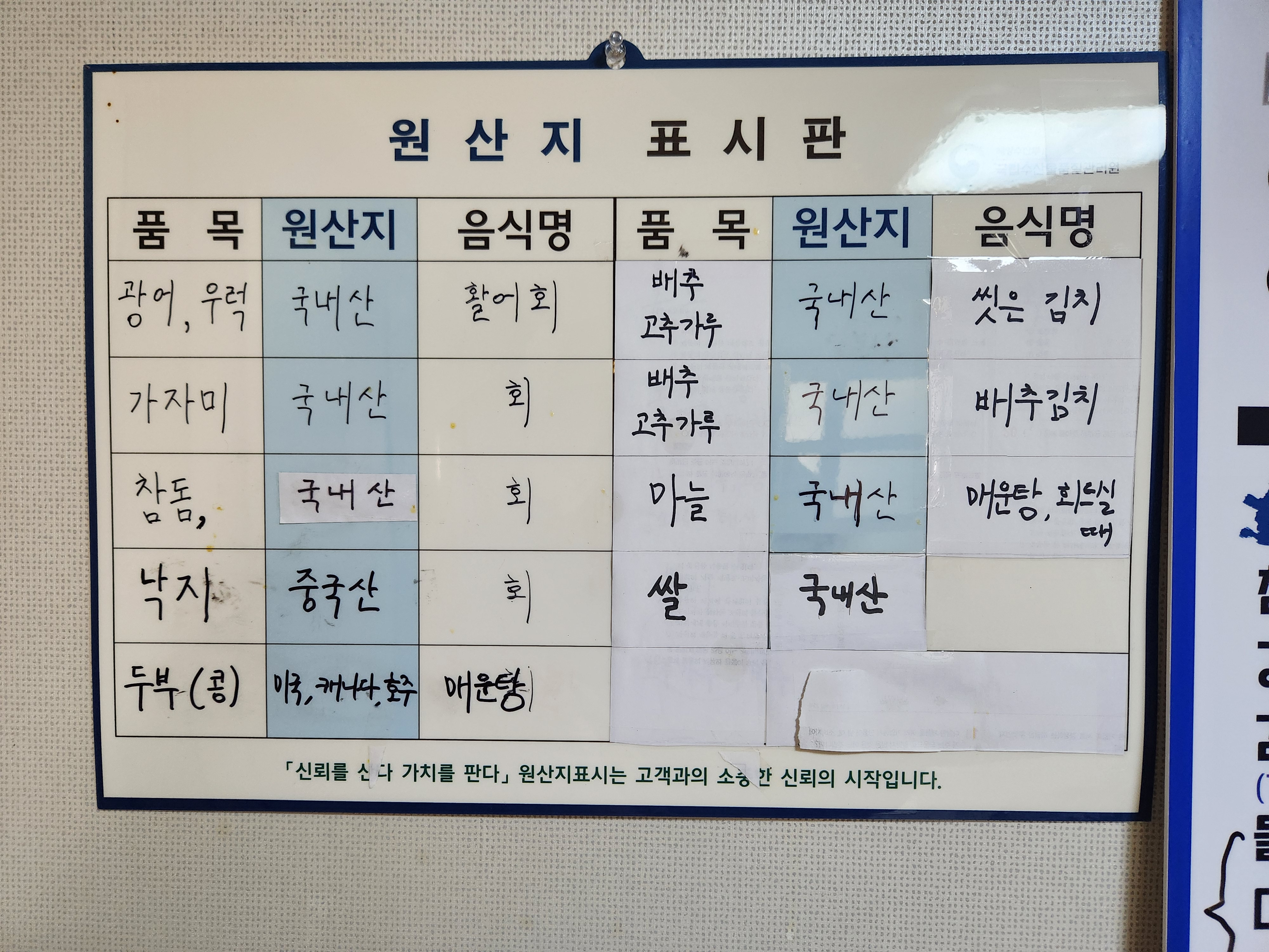 원산지 표시는 잘 보이게 되어있어요. 낙지만 제외하고는 모두 국내산으로 표시되어 있습니다.