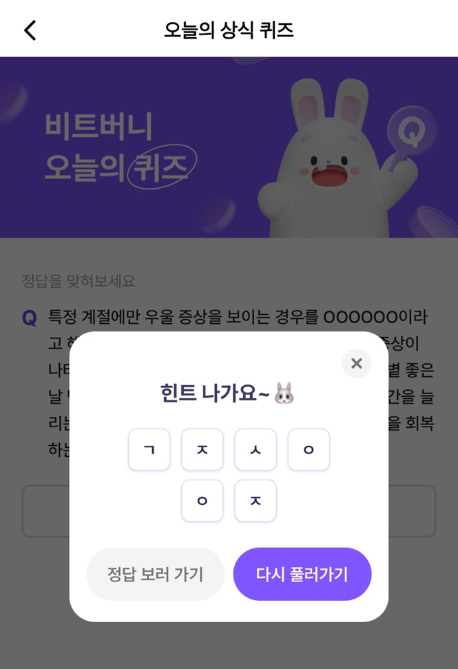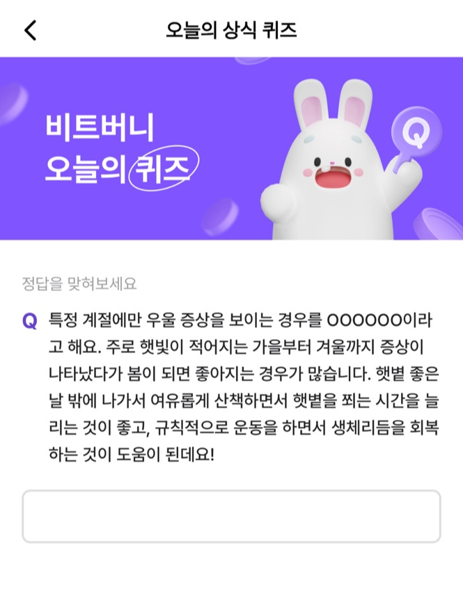 비트버니 오늘의 퀴즈 2월 13일 우울증 종류, 원인, 예방방법