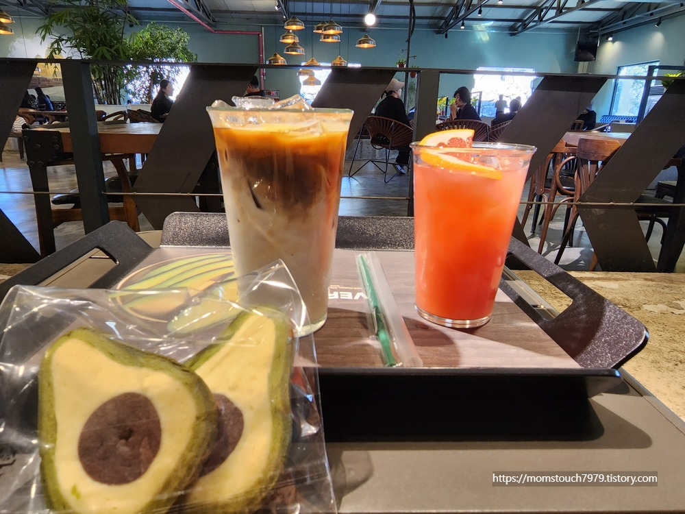 10시 오픈런이었음에도 많은 분들이 아보카도 샌드위치와 다른 베이커리들과 함께 즐기고 계셔서 깜짝 놀랐어요. 넓은 실내 공간에 유독 눈에 띄는 창문들.. 창문 밖 풍경으로 소나무도 보여 이색적인 공간을 만들어 주었답니다. 천장이 높고 메뉴판과 베이커리 구성, 전체적인 분위기는 마치 미국에 와 있는 듯한 착각이 들 정도로 이국적인 풍경이었어요. 메뉴 주문하는 곳에는 신선한 과일과 특히나 아보카도가 상자 안에 가득 있어서 아보카도와 관련된 메뉴들이 많겠다 생각했었습니다. 역시 아보카도 샌드위치 너무 맛있게 보였어요.아보카도 커피도 시그니쳐로 준비되어 있었습니다. 일전에 다른 곳에서 아보카도 커피를 맛보고는 생각보다 별로여서 저는 오늘 아보카도 커피는 제외했습니다. 하지만 샌드위치 속에 아보카도 듬뿍 들어 있는 것은 너무 맛있어 보였습니다.