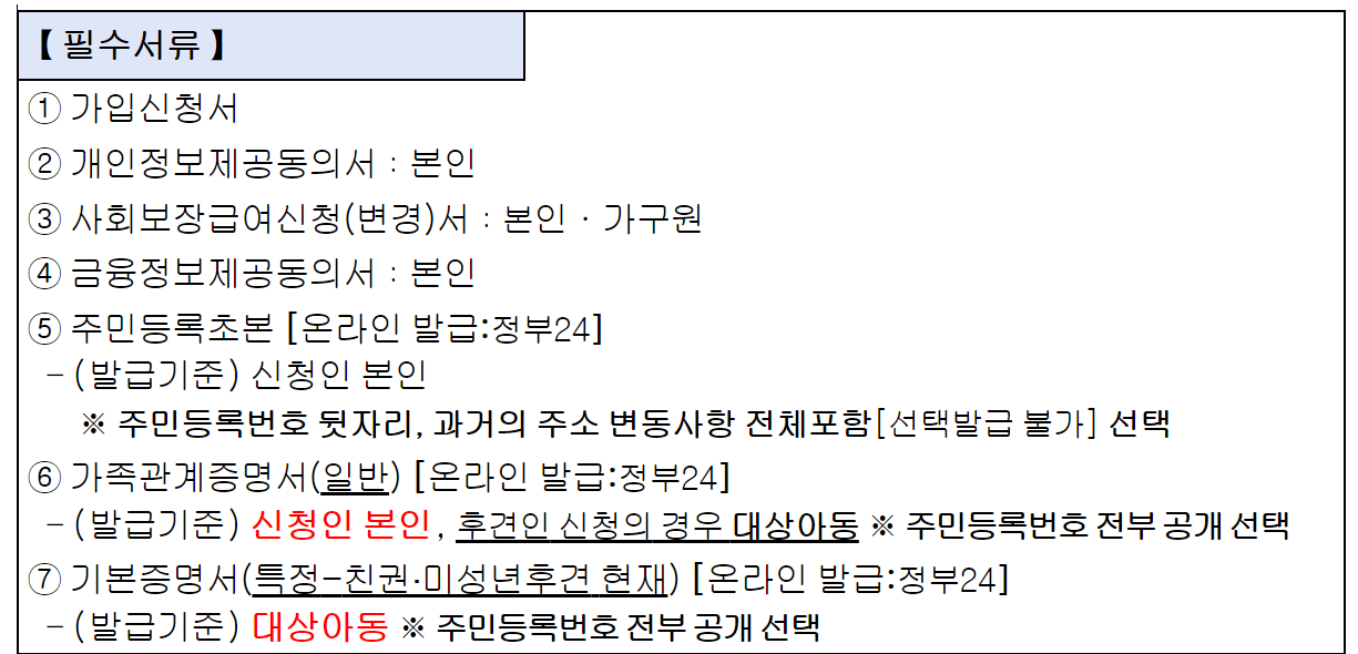 - 제출서류는 공고일 이후 발급분만 인정됩니다.(필수서류 및 추가서류 안내입니다.)